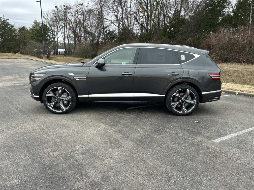 This GV80 is equipped with: Option Group 01, 18 Speakers, 3rd row seats: split-bench, 4-Wheel Disc Brakes, ABS brakes, Adaptive suspension, Air Conditioning, All Season Fitted Liners, Alloy wheels, AM/FM radio: SiriusXM, Anti-whiplash front head restraints, Auto High-beam Headlights, Auto tilt-away steering wheel, Auto-dimming door mirrors, Auto-dimming Rear-View mirror, Automatic temperature control, Brake assist, Bumpers: body-color, Cargo Net, Compass, Delay-off headlights, Driver door bin, Driver vanity mirror, Dual front impact airbags, Dual front side impact airbags, Electronic Stability Control, Emergency communication system: Genesis Connected Services, Exterior Parking Camera Rear, First Aid Kit, Four wheel independent suspension, Fragrance Cartridge, Front anti-roll bar, Front Bucket Seats, Front Center Armrest, Front dual zone A/C, Front reading lights, Fully automatic headlights, Garage door transmitter: HomeLink, Genuine wood console insert, Genuine wood dashboard insert, Genuine wood door panel insert, Heads-Up Display, Heated and Ventilated Front Bucket Seats, Heated door mirrors, Heated front seats, Heated rear seats, Heated steering wheel, Illuminated Door Scuff Plates, Illuminated entry, Knee airbag, Leather steering wheel, Low tire pressure warning, Memory seat, Nappa Leather Seating Surfaces, Navigation System, NFC Key Card, Occupant sensing airbag, Outside temperature display, Overhead airbag, Overhead console, Panic alarm, Passenger door bin, Passenger vanity mirror, Power door mirrors, Power driver seat, Power Liftgate, Power moonroof, Power passenger seat, Power steering, Power windows, Radio data system, Radio: AM/FM/HD Bose Premium Sound System, Rain sensing wipers, Rear air conditioning, Rear anti-roll bar, Rear dual zone A/C, Rear reading lights, Rear seat center armrest, Rear side impact airbag, Rear window defroster, Rear window wiper, Reclining 3rd row seat, Remote keyless entry, Security system, Speed control, Speed-sensing steering, Speed-Sensitive Wipers, Split folding rear seat, Spoiler, Steering wheel memory, Steering wheel mounted audio controls, Tachometer, Telescoping steering wheel, Tilt steering wheel, Traction control, Trip computer, Turn signal indicator mirrors, Variably intermittent wipers, Ventilated front seats, Ventilated rear seats, and Wheels: 22" x 9.5J Dark Gray Matte Alloy.