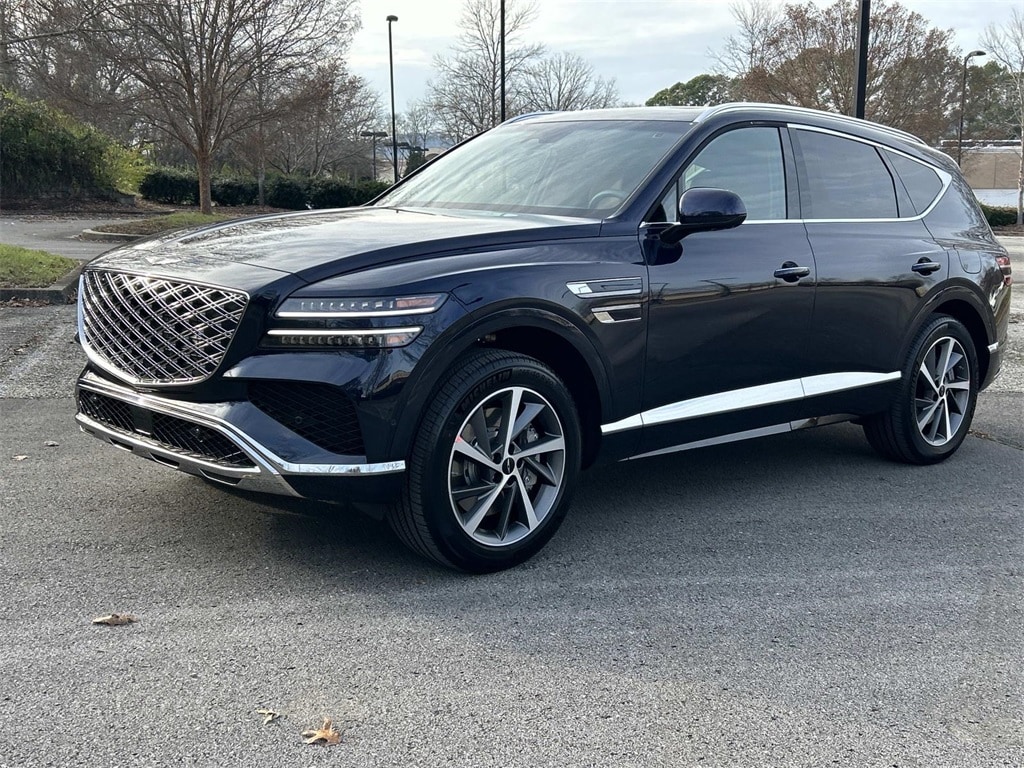 This GV80 is equipped with: Option Group 01, 18 Speakers, 3rd row seats: split-bench, 4-Wheel Disc Brakes, ABS brakes, Air Conditioning, Alloy wheels, AM/FM radio: SiriusXM, Anti-whiplash front head restraints, Auto High-beam Headlights, Auto tilt-away steering wheel, Auto-dimming door mirrors, Auto-dimming Rear-View mirror, Auto-leveling suspension, Automatic temperature control, Brake assist, Bumpers: body-color, Cargo Net, Compass, Delay-off headlights, Driver door bin, Driver vanity mirror, Dual front impact airbags, Dual front side impact airbags, Electronic Stability Control, Emergency communication system: Genesis Connected Services, Exterior Parking Camera Rear, First Aid Kit, Four wheel independent suspension, Fragrance Cartridge, Front anti-roll bar, Front Bucket Seats, Front Center Armrest, Front dual zone A/C, Front reading lights, Fully automatic headlights, Garage door transmitter: HomeLink, Genuine wood console insert, Genuine wood dashboard insert, Genuine wood door panel insert, Heated and Ventilated Front Bucket Seats, Heated door mirrors, Heated front seats, Heated steering wheel, Illuminated entry, Knee airbag, Leather Seating Surfaces, Leather steering wheel, Low tire pressure warning, Memory seat, Navigation System, NFC Key Card, Occupant sensing airbag, Outside temperature display, Overhead airbag, Overhead console, Panic alarm, Passenger door bin, Passenger vanity mirror, Power door mirrors, Power driver seat, Power Liftgate, Power moonroof, Power passenger seat, Power steering, Power windows, Radio data system, Radio: AM/FM/HD Bose Premium Sound System, Rain sensing wipers, Rear air conditioning, Rear anti-roll bar, Rear dual zone A/C, Rear reading lights, Rear seat center armrest, Rear side impact airbag, Rear window defroster, Rear window wiper, Reclining 3rd row seat, Remote keyless entry, Roadside Assistance Kit, Security system, Speed control, Speed-sensing steering, Speed-Sensitive Wipers, Split folding rear seat, Spoiler, Steering wheel memory, Steering wheel mounted audio controls, Tachometer, Telescoping steering wheel, Tilt steering wheel, Traction control, Trip computer, Turn signal indicator mirrors, Variably intermittent wipers, Ventilated front seats, and Wheels: 20" x 8.5J Dark Gray Matte Alloy.